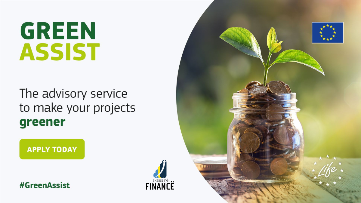 Thirrja Green Assist via EEN është një mundësi financimi nga Agjencia Evropiane për Klimë, Infrastrukturë dhe Mjedis (CINEA) në bashkëpunim me Enterprise Europe Network (EEN) për SHMPT (NVM-të) që duan të përgatisin ose përshpejtojnë projekte investimesh të gjelbërta. Kjo iniciativë ofron shërbime këshilluese të personalizuara dhe falas, të financuara nën programin InvestEU dhe të mbështetura nga programi LIFE.
