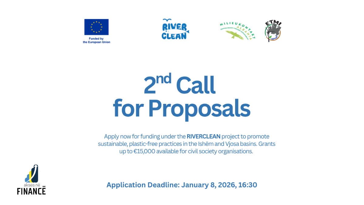 Thirrja e dytë nga Milieukontakt Albania dhe ETMI Albania, pjesë të projektit RIVERCLEAN – Lumenj më të pastër, dete më të pastra, i cili synon të forcojë rolin e shoqërisë civile në monitorimin mjedisor, avokimin dhe angazhimin komunitar në basenet e lumenjve Ishëm dhe Vjosë.